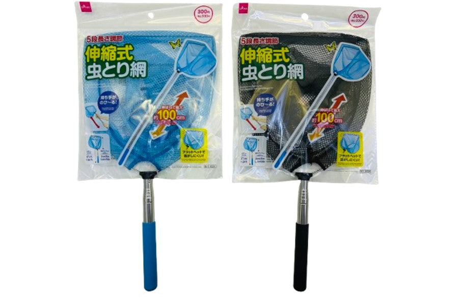 これ以外に伸縮性がないタイプで、よく見かける普通の虫取り網もありましたよ。